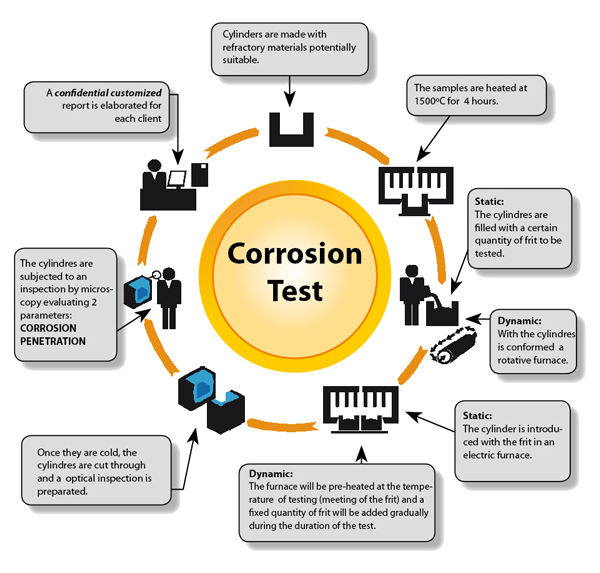 Nous offrons, par exemple, la possibilité de déterminer le réfractaire le plus adapté aux frittes de chaque client grâce à des tests de corrosion statiques et dynamiques.